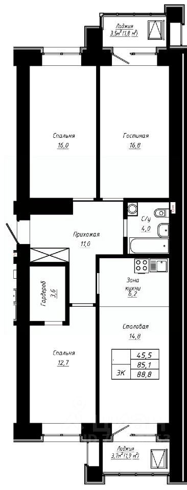 88,8 м²