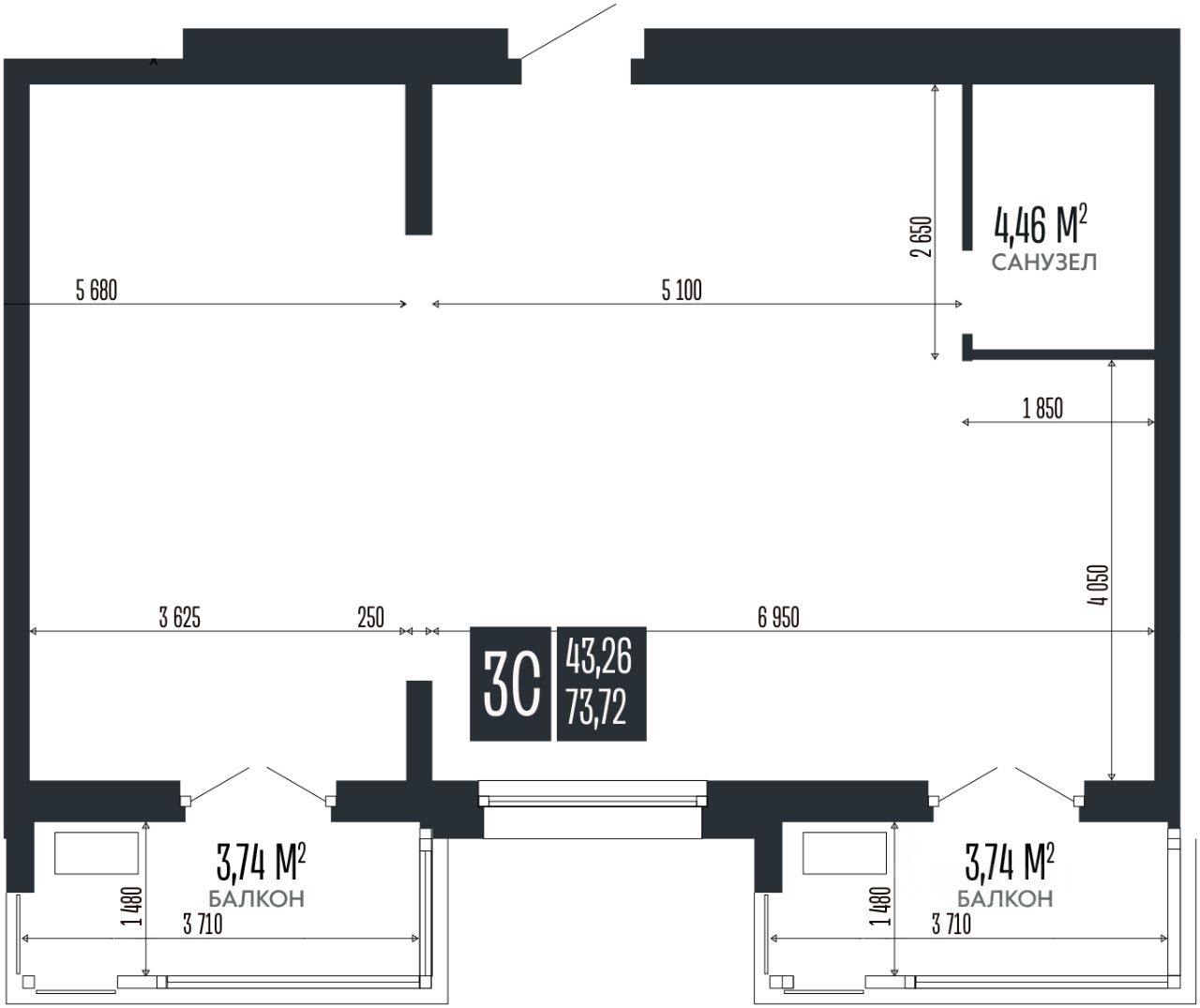Общая площадь73,72 м²