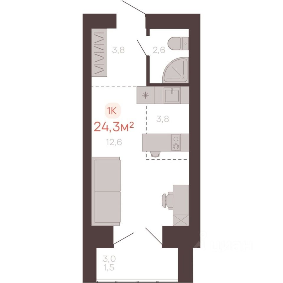 24,3 м²