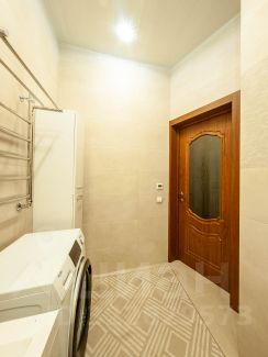 В квартире остается вся корпусная мебель высокого качества, которая изготовлена на заказ. Вместе с кухонным гарнитуром остается встроенная техника: холодильник, духовой шкаф, микроволновая печь, варочная панель, посудомоечная машина.
