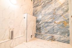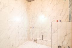 Санузел совмещенный, отделан широкоформатным дорогостоящим кафелем.