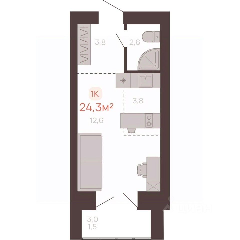 Общая площадь24,3 м²