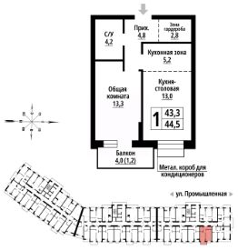 Продаётся 1-комнатная квартира в строящемся доме (Дом 10), срок сдачи: IV-кв. 2029, общей площадью 44 кв.м., на 4 этаже. Новый жилой комплекс "Родные берега" от застройщика "Жилищная Инициатива" расположен по адресу: Алтайский край, г. Барнаул, Центральный район , улица Промышленная