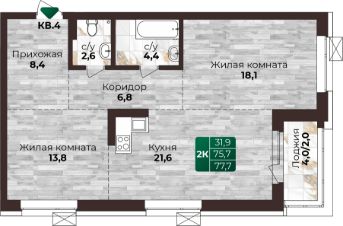 77,7 м²
