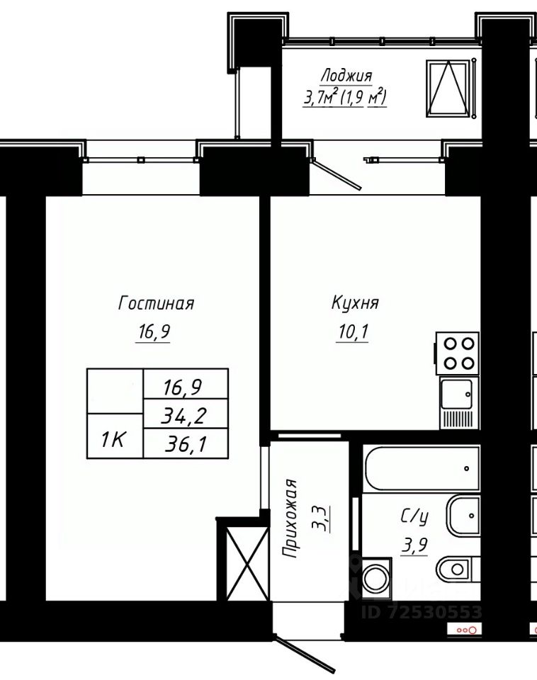 Общая площадь36,1 м²