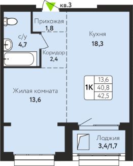 42,5 м²