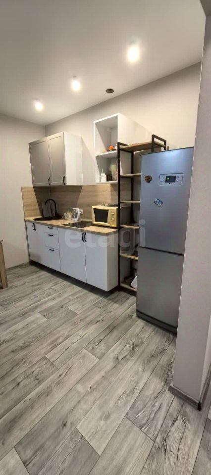 Квартира расположена на седьмом этаже 17-этажного кирпично-монолитного дома. Общая площадь — 35 кв. м. Высота потолков — 2,7 метра.
