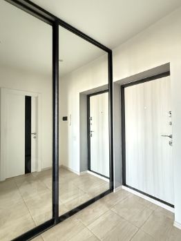 В прихожей имеется большой вместительный встроенный шкаф, разделенный на две зоны.