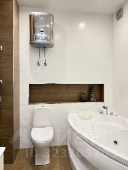 Санузел просторный, имеется водонагреватель, проложен электрический теплый пол.