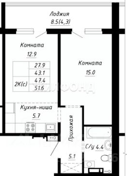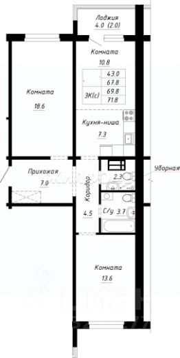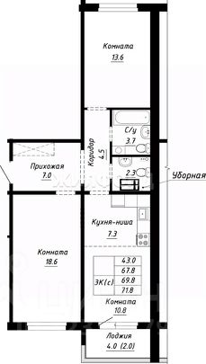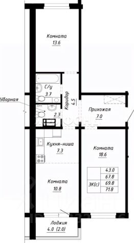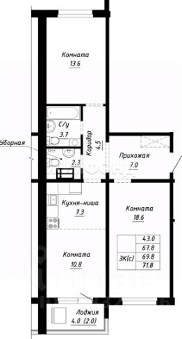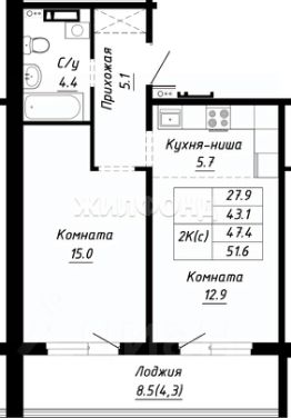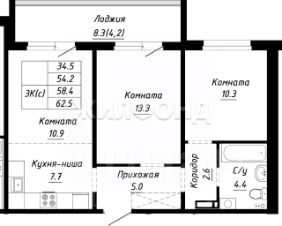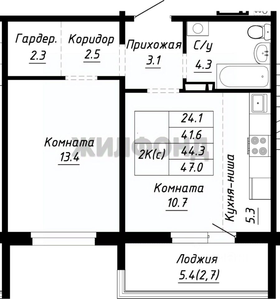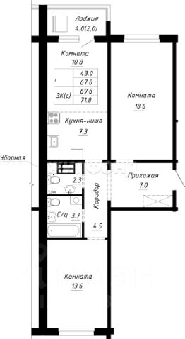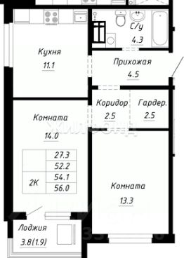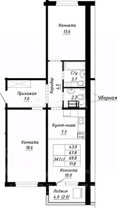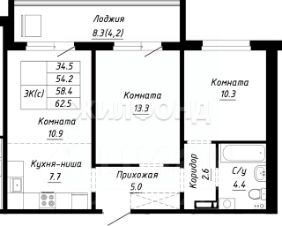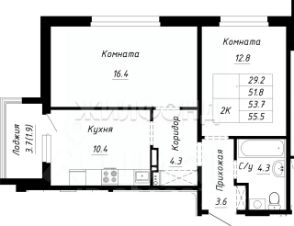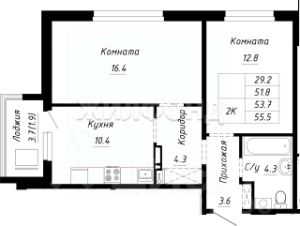 Продается 2-комнатная квартира в строящемся доме. Срок сдачи 2 квартал 2026. Чистовая отделка. Общая площадь квартиры 44.30 кв. м. 8 этаж.