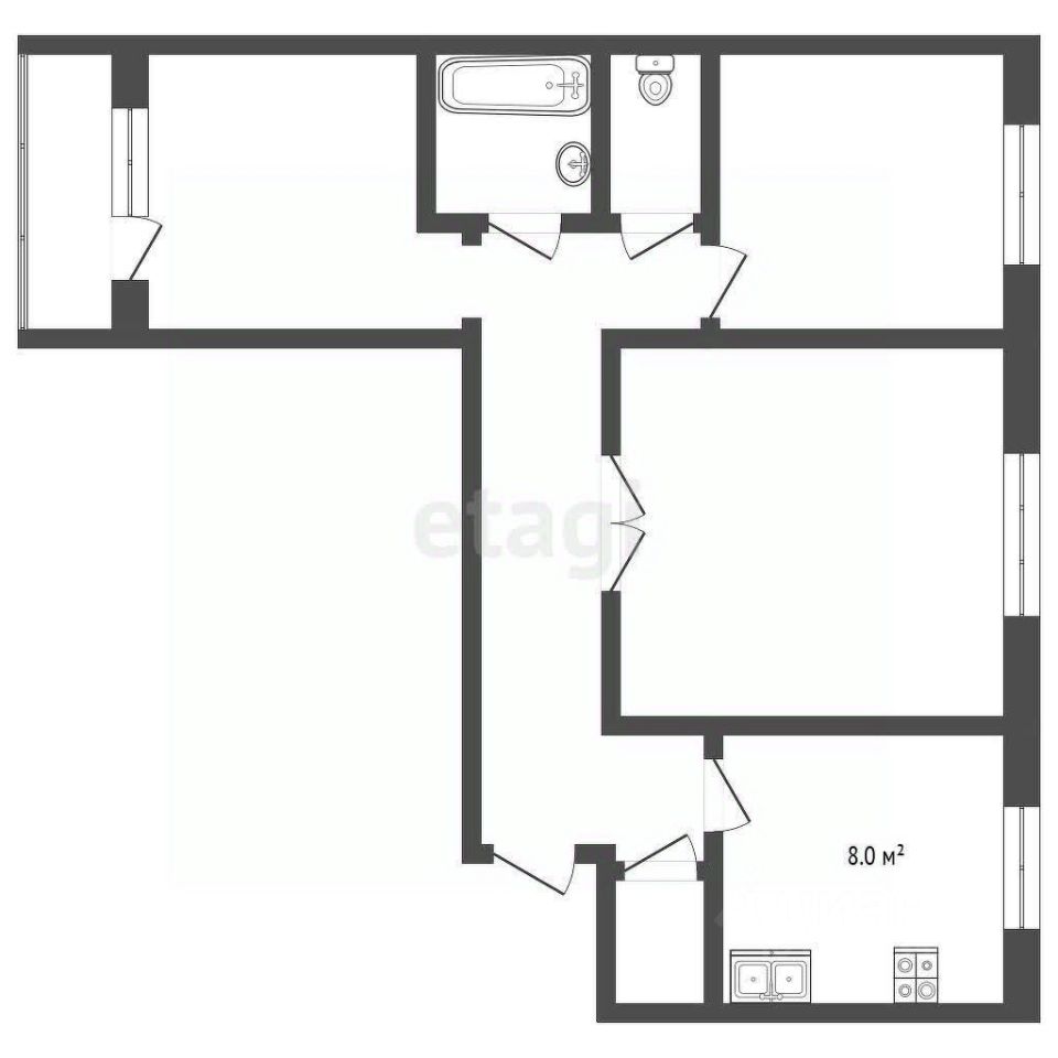 Квартира характеризуется как теплая и светлая за счет удачной ориентации окон и качественных стеклопакетов.