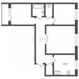 Просторная трехкомнатная квартира в панельном доме 121 серии расположена в престижном центральном районе Барнаула.