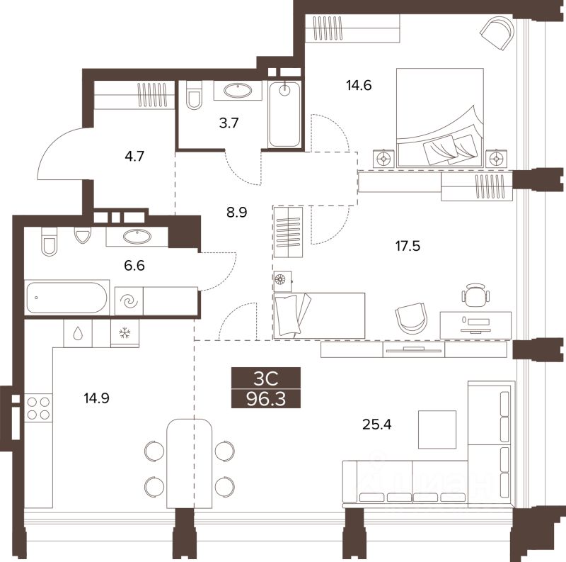 96,3 м²