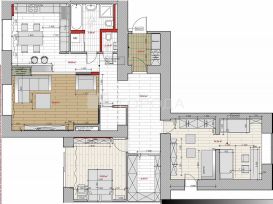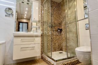 Один из санузлов совмещенный, в нем расположены стиральная машинка, унитаз, душевая и ванна с гидромассажем, водонагреватель. Имеется также изолированный туалет. Пол в санузлах и лоджии из натуральной пробки, очень теплый и нескользкий.