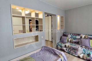 Просторная детская комната 24 кв.м. разделена перегородкой, что создает возможность одновременного использования двумя детьми.