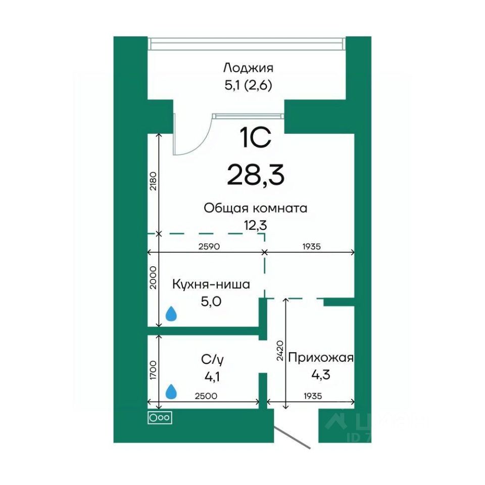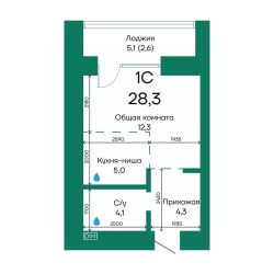 Продаётся 1-комнатная квартира в строящемся доме (Корпус 2), срок сдачи: III-кв. 2026, общей площадью 28.3 кв.м., на 9 этаже.