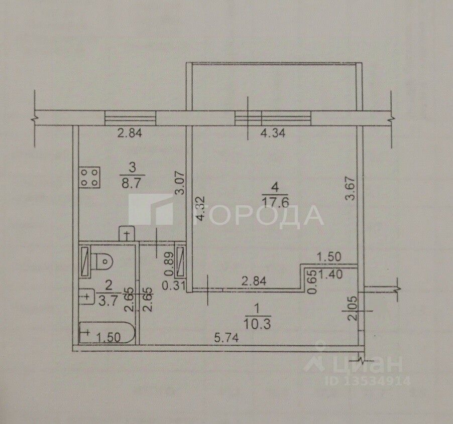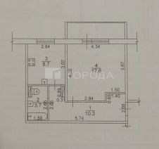 Площадь квартиры: 40,3/17,6/8,7 кв.м. В подъезде грузовой лифт, на площадке 4 квартиры.