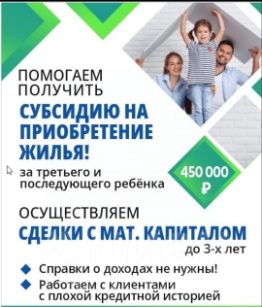 Помогу оформить субсидию в размере 450 000 за третьего ребенка.