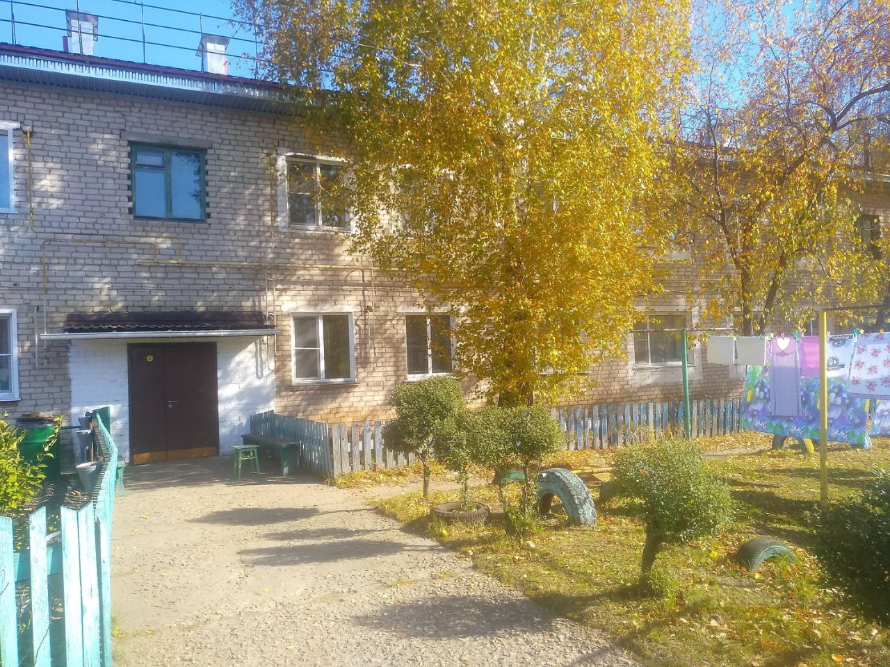 Зелёный двор, тихое место,в ночное время двор освещается.