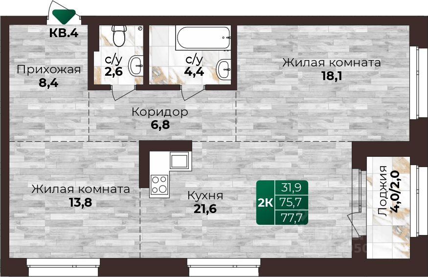 77,7 м²