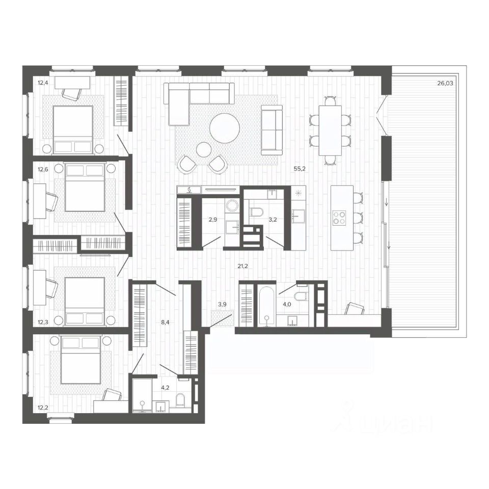 Продаётся 5-комнатная квартира в строящемся доме (Корпус 3), срок сдачи: II-кв. 2026, общей площадью 176.87 кв.м., на 9 этаже. Новый жилой комплекс "Вышка зелёный квартал на горе" от группы компаний "Мой дом" расположен по адресу: г. Барнаул, по ул. Змеиногорский тракт.