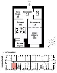 Продаётся 2-комнатная квартира в строящемся доме (Корпус 1), срок сдачи: II-кв. 2027, общей площадью 41 кв.м., на 2 этаже. ЖК "Тургенев" на ул. Чеглецова, 25а представляет из себя два кирпичных здания высотой 9 этажей.