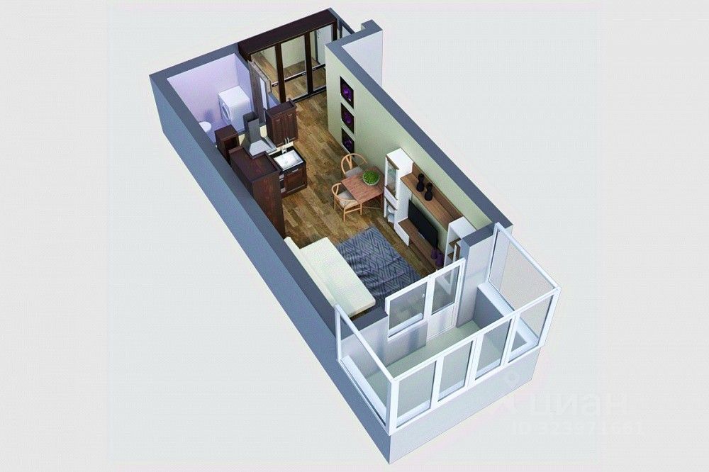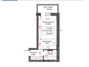 Студия 27 кв.м + 5 кв.м (балкон).