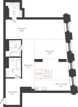 Продаётся 3-комнатная квартира в строящемся доме (Башня "Мира" (Корпус 2)), срок сдачи: I-кв. 2030, общей площадью 103.9 кв.м., на 14 этаже. Две башни формируют принципиально новое городское life-style пространство для жителеи и горожан. Единыи ансамбль площади Баварина и набережнои станет новым городским центром.