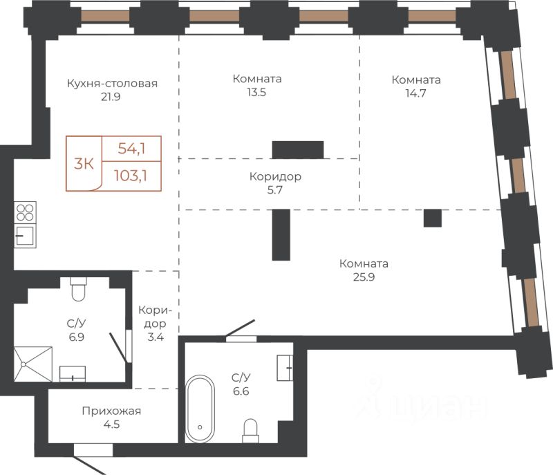 Продаётся 3-комнатная квартира в строящемся доме (Башня "Мира" (Корпус 2)), срок сдачи: I-кв. 2030, общей площадью 102.9 кв.м., на 4 этаже. Две башни формируют принципиально новое городское life-style пространство для жителеи и горожан. Единыи ансамбль площади Баварина и набережнои станет новым городским центром.