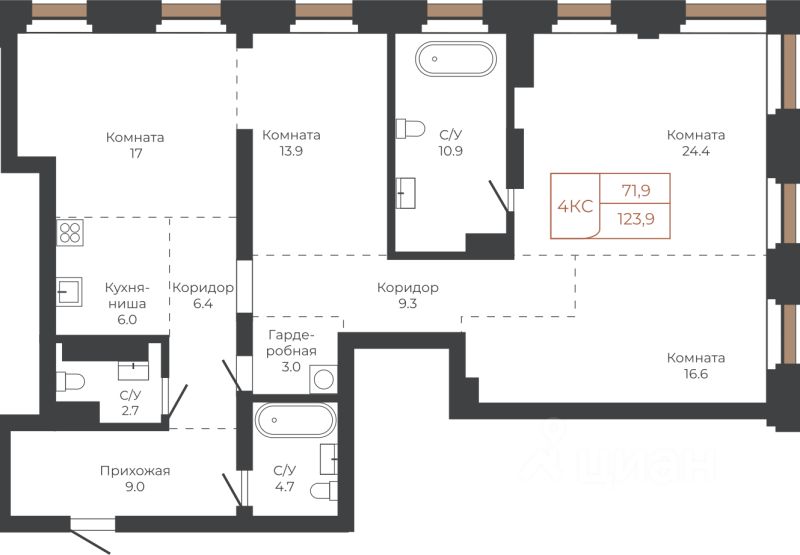 Продаётся 4-комнатная квартира в строящемся доме (Башня "Столица" (Корпус 1)), срок сдачи: I-кв. 2030, общей площадью 123.4 кв.м., на 18 этаже. Две башни формируют принципиально новое городское life-style пространство для жителеи и горожан. Единыи ансамбль площади Баварина и набережнои станет новым городским центром.