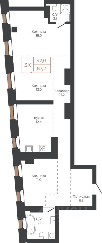 Продаётся 3-комнатная квартира в строящемся доме (Башня "Столица" (Корпус 1)), срок сдачи: I-кв. 2030, общей площадью 86.9 кв.м., на 19 этаже. Две башни формируют принципиально новое городское life-style пространство для жителеи и горожан. Единыи ансамбль площади Баварина и набережнои станет новым городским центром.