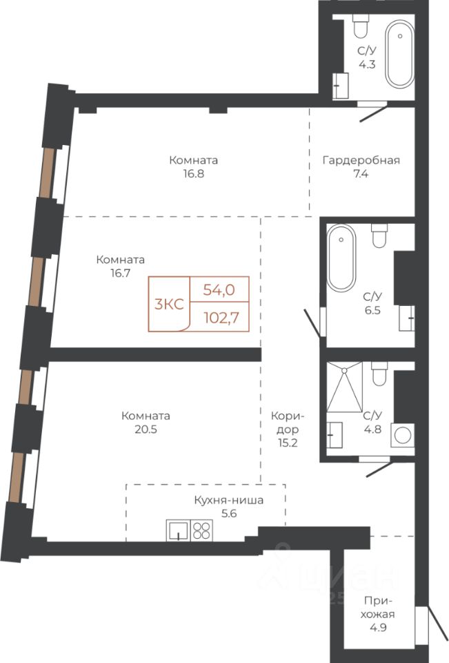 Продаётся 3-комнатная квартира в строящемся доме (Башня "Столица" (Корпус 1)), срок сдачи: I-кв. 2030, общей площадью 102 кв.м., на 7 этаже. Две башни формируют принципиально новое городское life-style пространство для жителеи и горожан. Единыи ансамбль площади Баварина и набережнои станет новым городским центром.