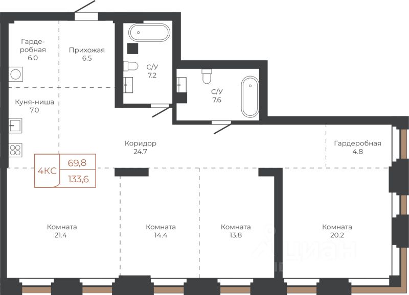 Продаётся 4-комнатная квартира в строящемся доме (Башня "Столица" (Корпус 1)), срок сдачи: I-кв. 2030, общей площадью 133.6 кв.м., на 4 этаже. Две башни формируют принципиально новое городское life-style пространство для жителеи и горожан. Единыи ансамбль площади Баварина и набережнои станет новым городским центром.