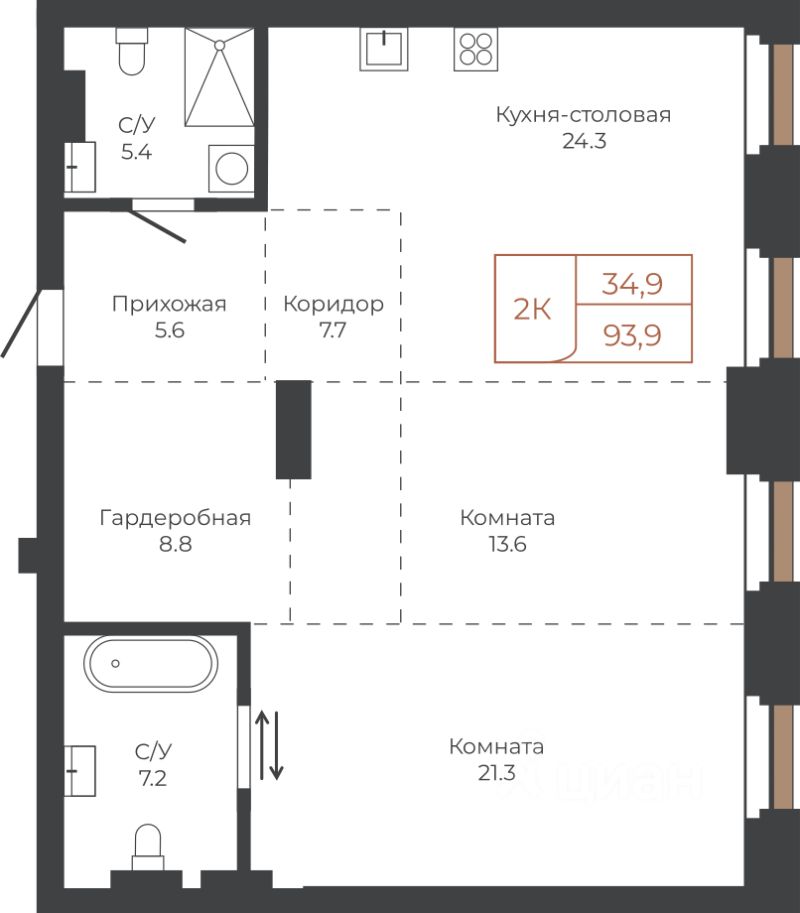 Продаётся 2-комнатная квартира в строящемся доме (Башня "Столица" (Корпус 1)), срок сдачи: I-кв. 2030, общей площадью 93.5 кв.м., на 5 этаже. Две башни формируют принципиально новое городское life-style пространство для жителеи и горожан. Единыи ансамбль площади Баварина и набережнои станет новым городским центром.