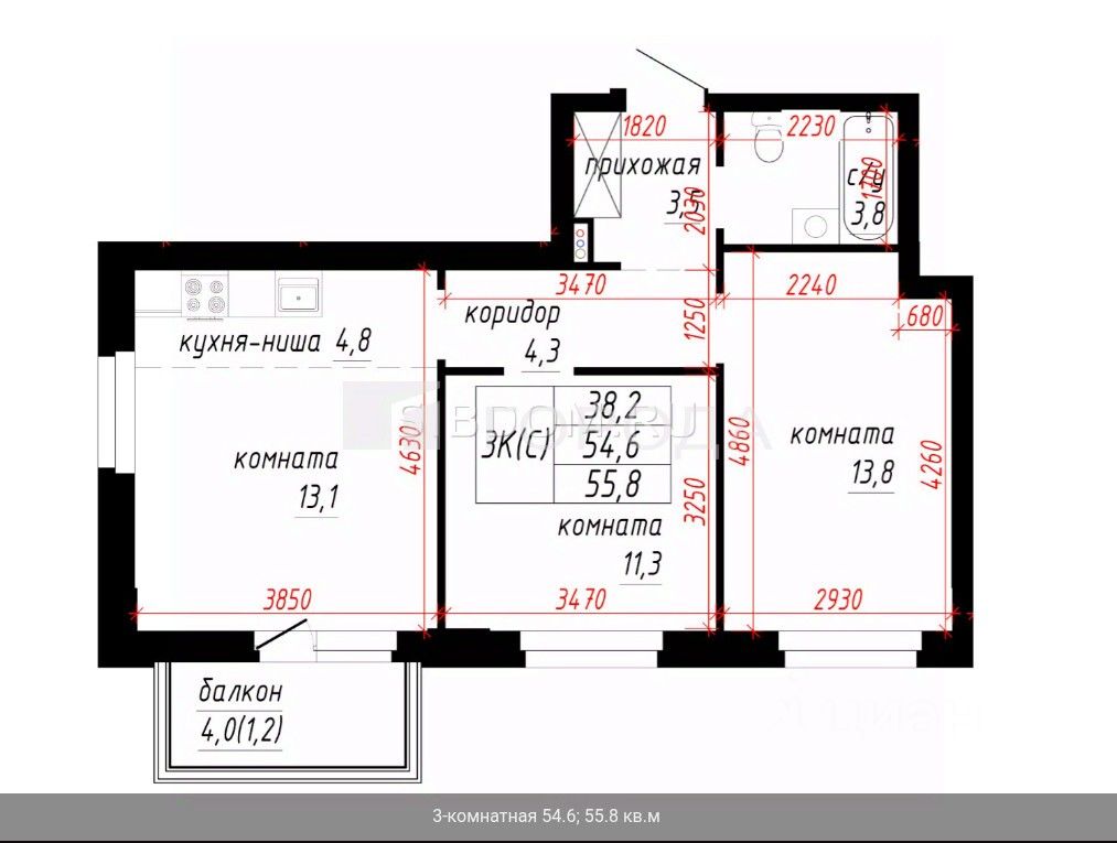 Продаём евротрёшку в новом доме "ДЖАЗ" !