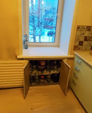 Кухня 5,9кв.м.удобной квадратной формы ,пластиковое окно ,под окном расположена ниша ,для хранения кухонной утвари ,солений и т.д.