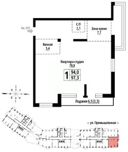 Продается 1-комн. квартира, 97 м²