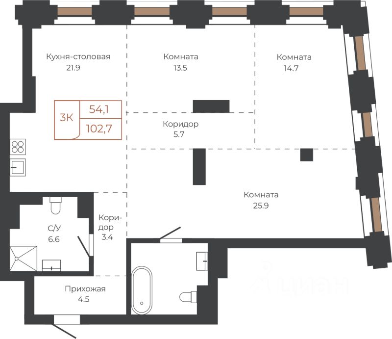 Продаётся 3-комнатная квартира в строящемся доме (Башня "Мира" (Корпус 2)), срок сдачи: I-кв. 2030, общей площадью 102.6 кв.м., на 5 этаже. Две башни формируют принципиально новое городское life-style пространство для жителеи и горожан. Единыи ансамбль площади Баварина и набережнои станет новым городским центром.