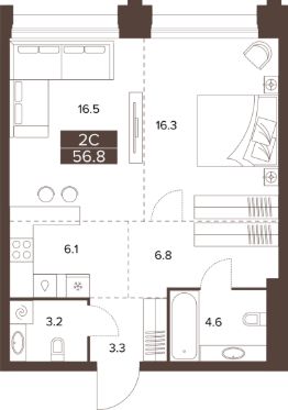 56,8 м²