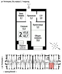 Продаётся 2-комнатная квартира в строящемся доме (Корпус 2), срок сдачи: II-кв. 2027, общей площадью 42 кв.м., на 5 этаже. ЖК "Тургенев" на ул. Чеглецова, 25а представляет из себя два кирпичных здания высотой 9 этажей.