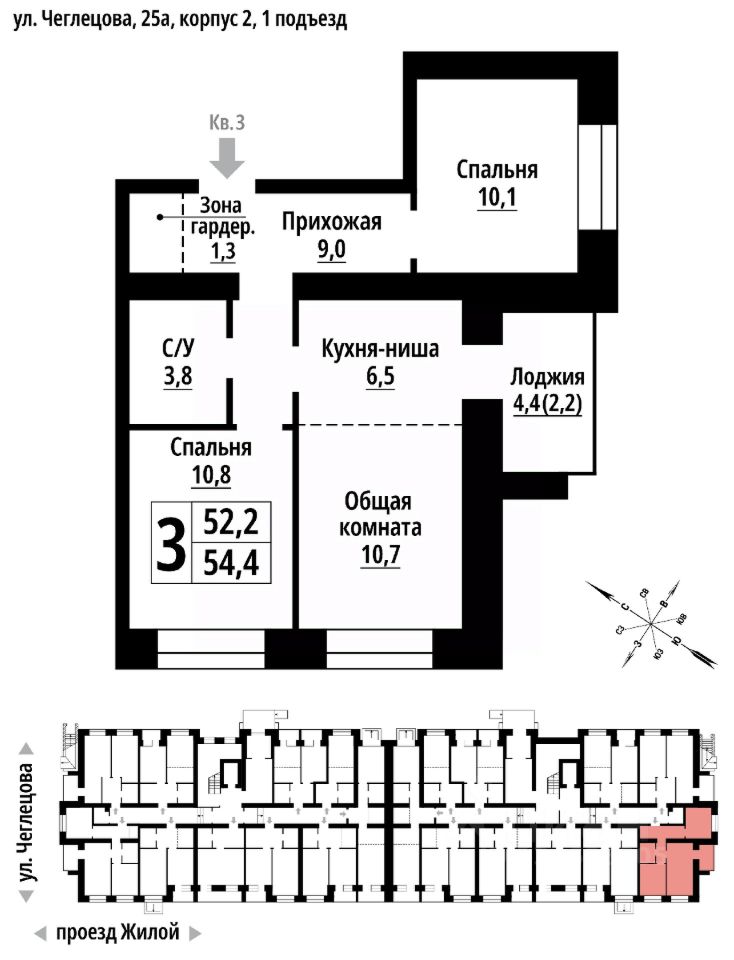 Продаётся 3-комнатная квартира в строящемся доме (Корпус 2), срок сдачи: II-кв. 2027, общей площадью 54 кв.м., на 1 этаже. ЖК "Тургенев" на ул. Чеглецова, 25а представляет из себя два кирпичных здания высотой 9 этажей.