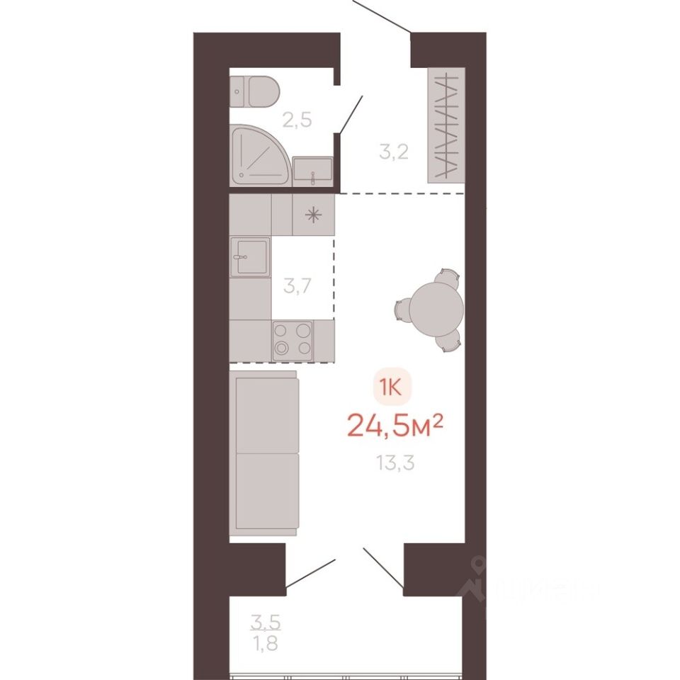 Общая площадь24,5 м²