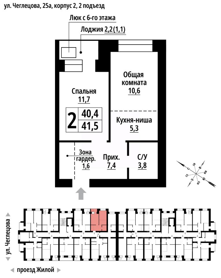 Продаётся 2-комнатная квартира в строящемся доме (Корпус 2), срок сдачи: II-кв. 2027, общей площадью 41 кв.м., на 6 этаже. ЖК "Тургенев" на ул. Чеглецова, 25а представляет из себя два кирпичных здания высотой 9 этажей.