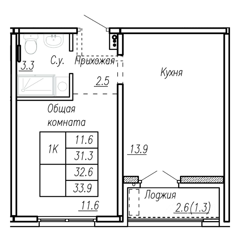 32,6 м²