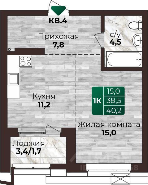 Общая площадь40,2 м²