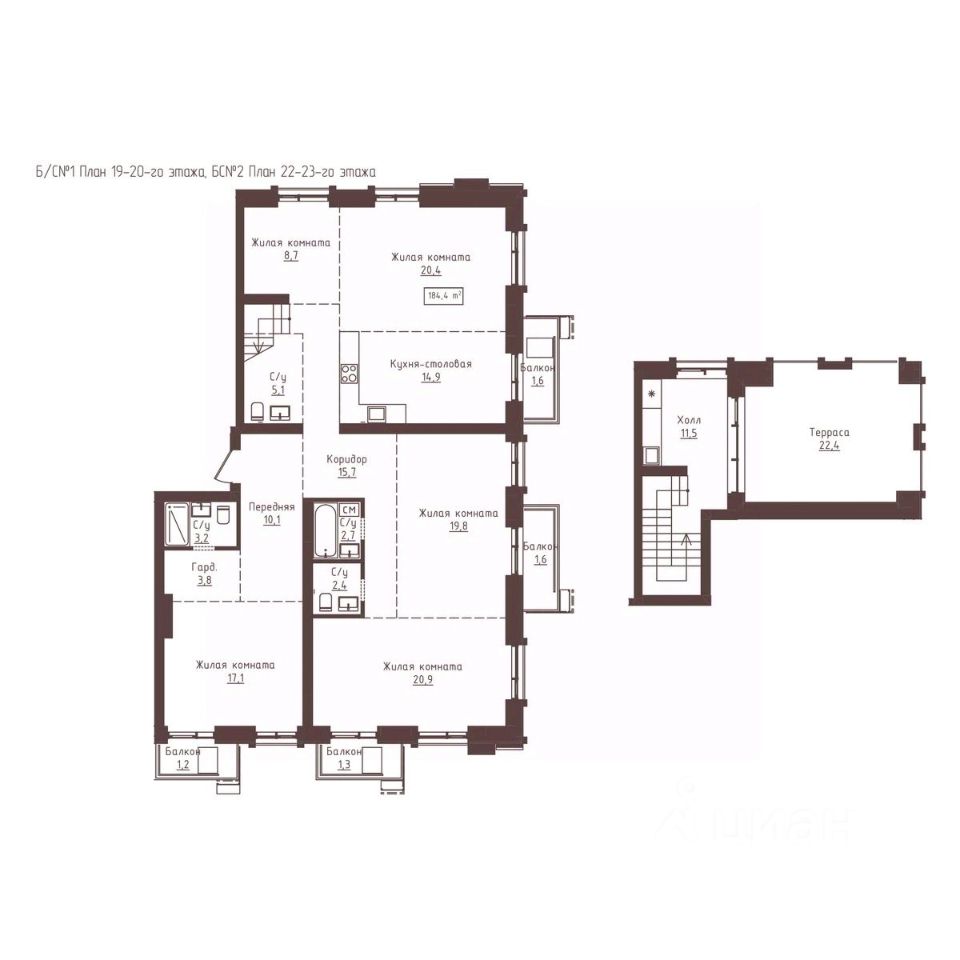 184,4 м²
