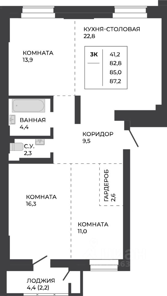Продаётся 3-комнатная квартира в строящемся доме (Дом 1), срок сдачи: II-кв. 2028, общей площадью 85 кв.м., на 18 этаже. Новый жилой комплекс "Павлов" от группы компаний "СЕЛФ" расположен по адресу: г. Барнаул, по ул. Павловский тракт.