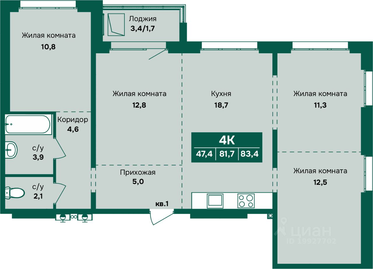 Продаётся 4-комнатная квартира в строящемся доме (Корпус 4), срок сдачи: III-кв. 2027, общей площадью 83.4 кв.м., на 8 этаже. Новый жилой комплекс "Камчатка" от группы компаний "Союз" расположен по адресу: г. Барнаул, по ул. Власихинская.