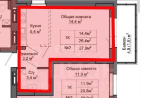 Продается однокомнатная квартира общей площадью 28 м² в современном 16-этажном доме на втором этаже.