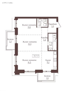 66,9 м²